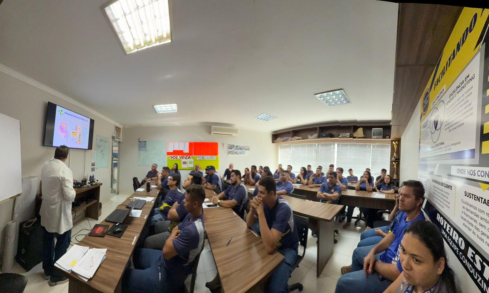 As ações foram conduzidas pela equipe formada por Claudiomiro Viera, técnico de enfermagem e assessor de Atenção Básica em Saúde, Fernanda Maltezo, enfermeira, e Adelson Dias, odontólogo. Ao todo, foram realizadas 232 atividades presenciais, entre palestras, capacitações, rodas de conversa e reuniões, contemplando 59 instituições, incluindo escolas, empresas e órgãos públicos.